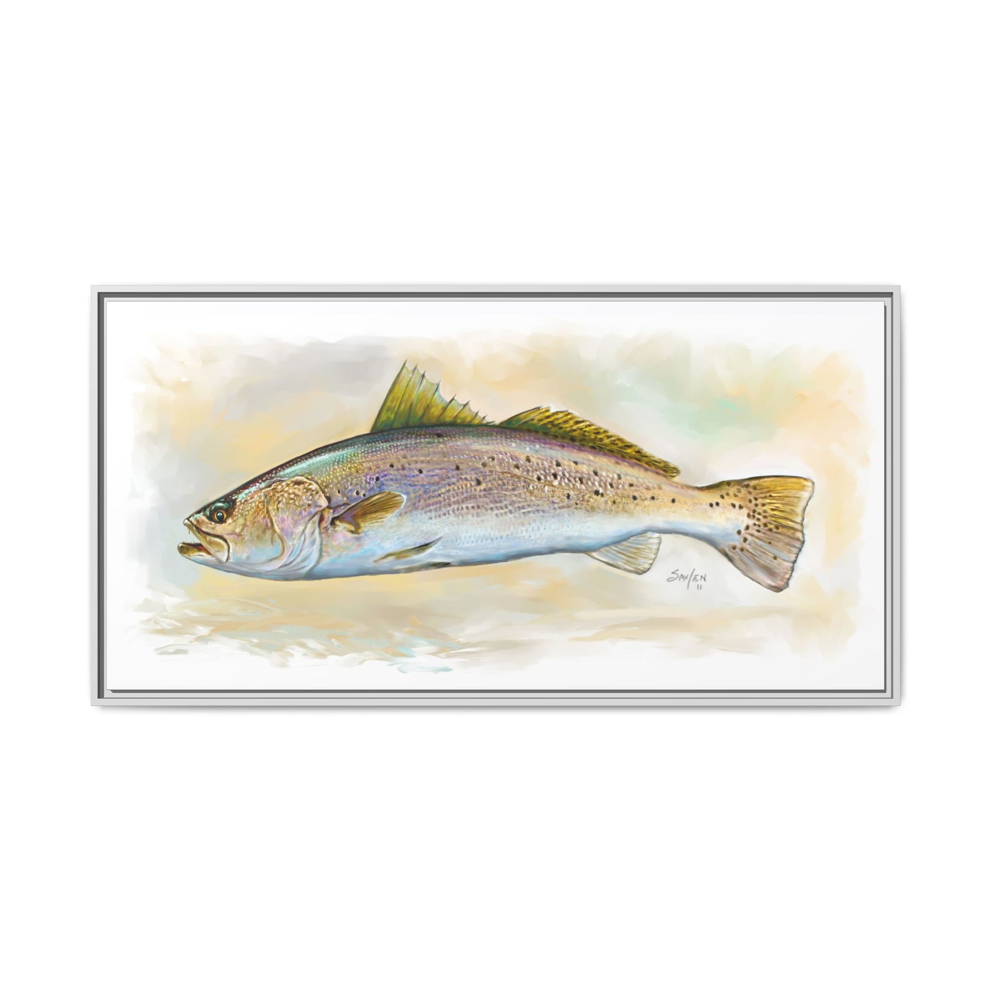 Speckled Trout Illustration — Coastal Gamefish Framed Canvas Art by Mike Savlen