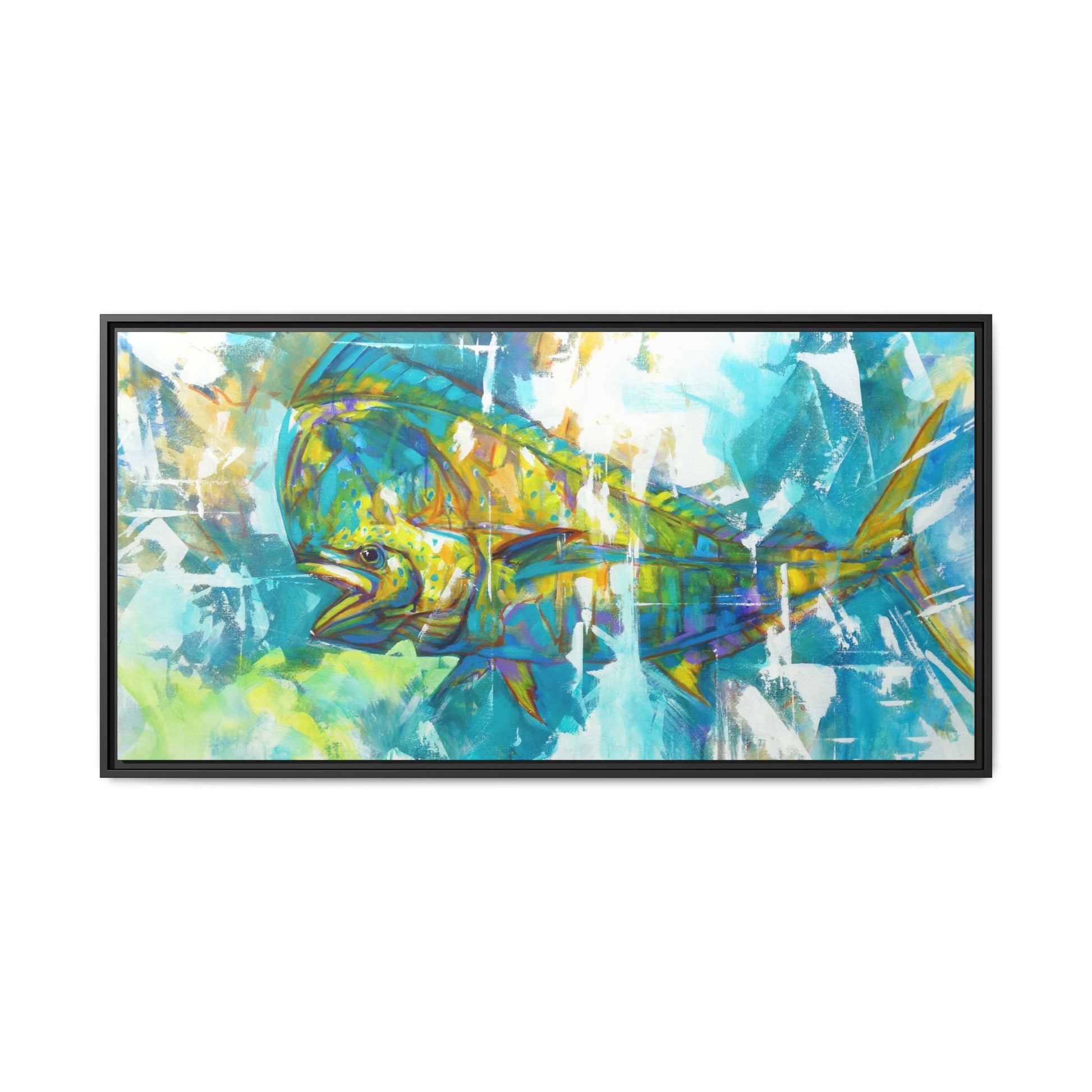 Explosive color, fluid motion, and pure ocean attitude — Toro by Mike Savlen captures the dynamic power of the mahi-mahi in full pursuit. Luminous blues, greens, and golds collide in a symphony of expressionist brushwork that mirrors the wild rhythm of the sea.